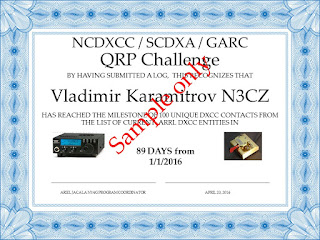 (10) Eligibility: You don't have to be a member of SCDXA, NCDXCC or Greer Amateur Radio Club to join. Any reader of this blog who has a radio amateur license is free to join. However there is an entry deadline of December 31, 2015. Certificates for any DX entries, or any radio amateur outside of SCDXA, NCDXCC or GARC will be mailed electronically as a PDF file.